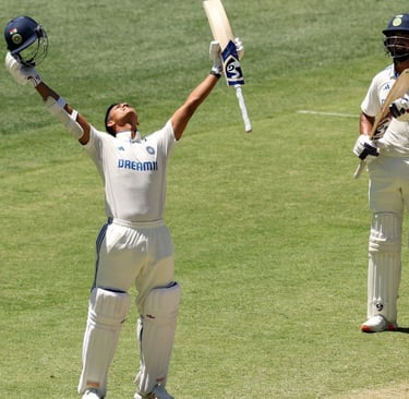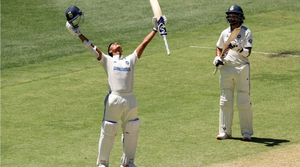 ఆదివారం పెర్త్లోని ఆప్టస్ స్టేడియంలో జరిగిన మొదటి బోర్డర్-గవాస్కర్ ట్రోఫీ టెస్ట్లో మూడో రోజు సందర్భంగా యశస్వి జైస్వాల్ ఆస్ట్రేలియాలో తన తొలి టెస్ట్ సెంచరీని సాధించాడు. జోష్ హేజిల్వుడ్ను సిక్సర్ కొట్టి జైస్వాల్ సెంచరీ పూర్తి చేసుకున్నాడు. ఆదివారం పెర్త్లోని ఆప్టస్ స్టేడియంలో జరిగిన మొదటి బోర్డర్-గవాస్కర్ ట్రోఫీ టెస్ట్లో మూడో రోజు సందర్భంగా యశస్వి జైస్వాల్ ఆస్ట్రేలియాలో తన తొలి టెస్ట్ సెంచరీని సాధించాడు. జోష్ హేజిల్వుడ్ను సిక్సర్ కొట్టి జైస్వాల్ సెంచరీ పూర్తి చేసుకున్నాడు. ఆస్ట్రేలియాలో తొలి మ్యాచ్లోనే సెంచరీ సాధించిన మూడో భారతీయుడిగా రికార్డు సృష్టించాడు. అతని కంటే ముందు సునీల్ గవాస్కర్ 1977లో, ఎస్ జైసింహ 1968లో ఈ ఘనత సాధించారు.